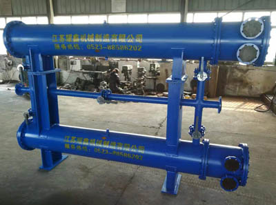 該冷卻器采用雙聯結構,由兩只相同面積的冷油器和三通閥裝置構成,一只工作,一只備用,每個冷卻器能承擔整個系統的冷卻負荷,管板一頭固定,一頭浮動、可拆卸的管束和水室箱蓋,便于運行過程中清洗、檢查和維修。冷卻器的材質,根據使用場所、水系統條件可有多種選擇。